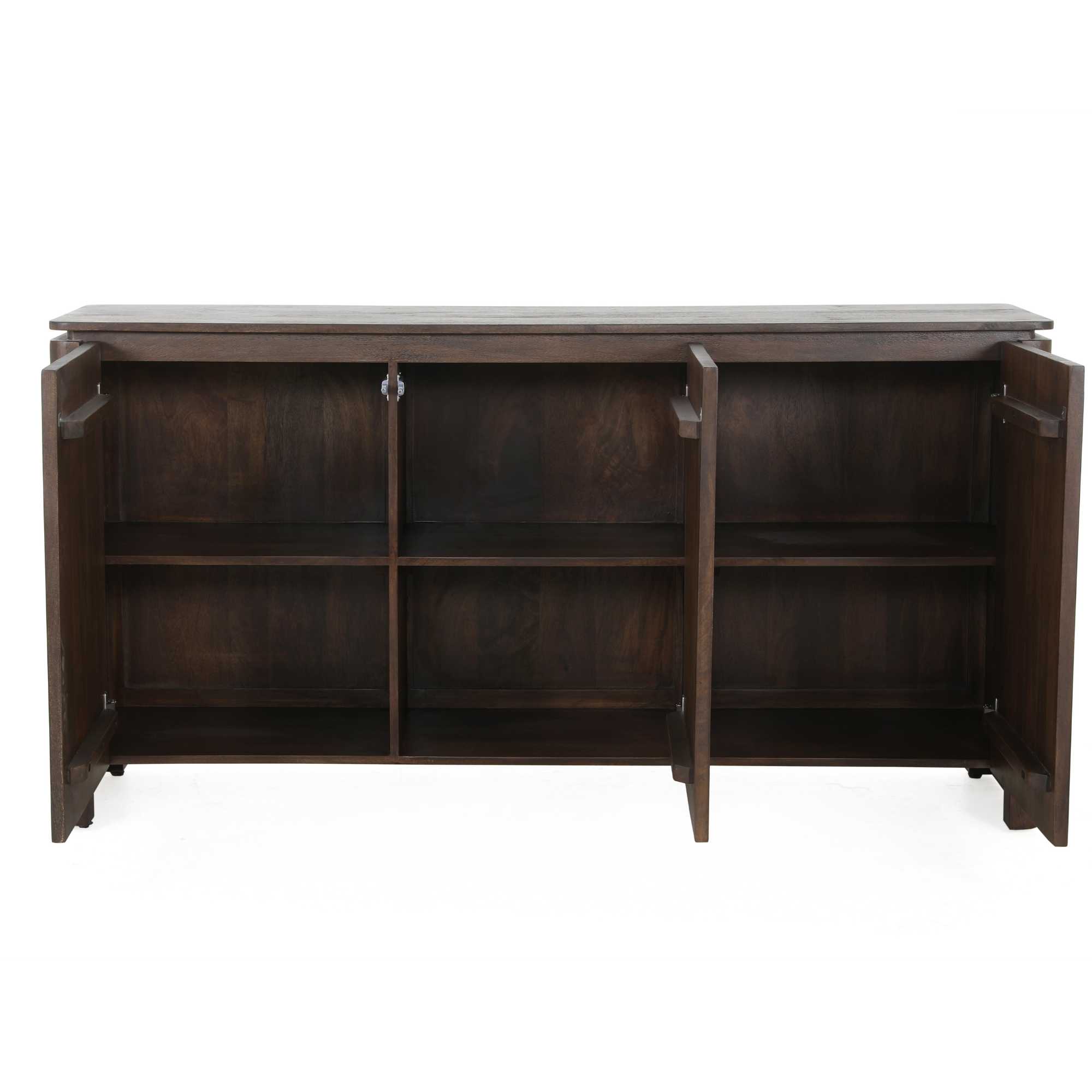Dressoir Dallas is gemaakt van mangohout in de kleur bruin. Dit model is voorzien van meerdere deuren met daarachter ruime opbergvakken. Het meubel combineert praktische opbergruimte met een tijdloze uitstraling.