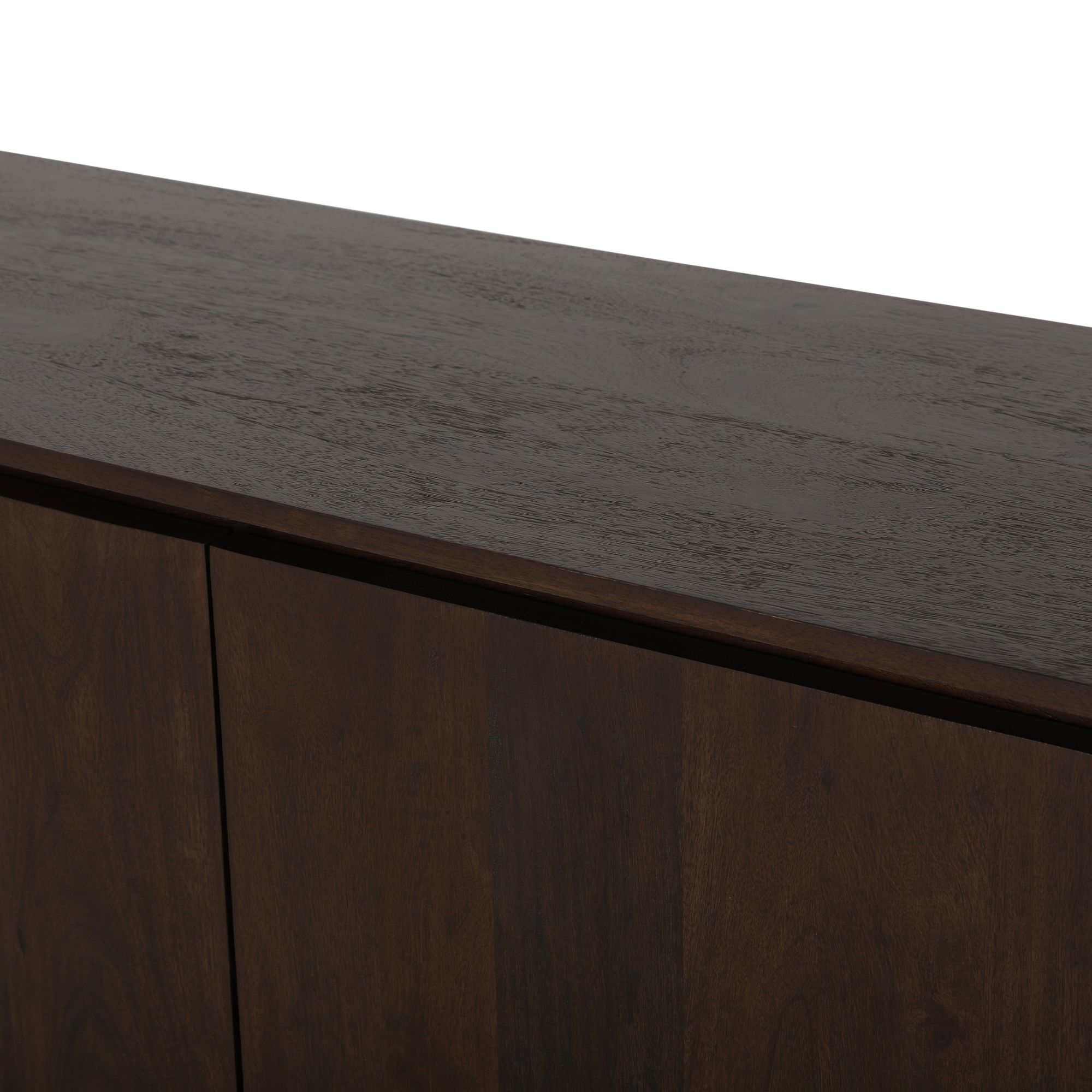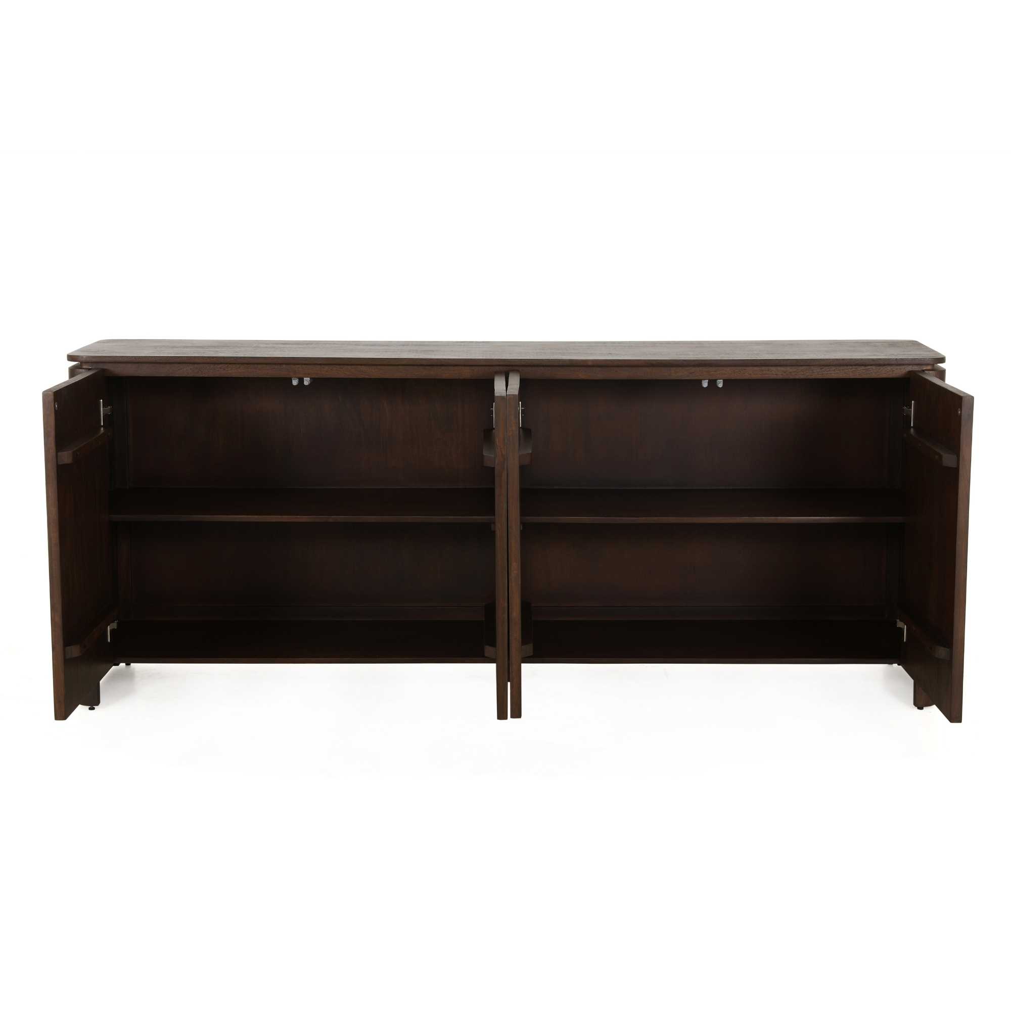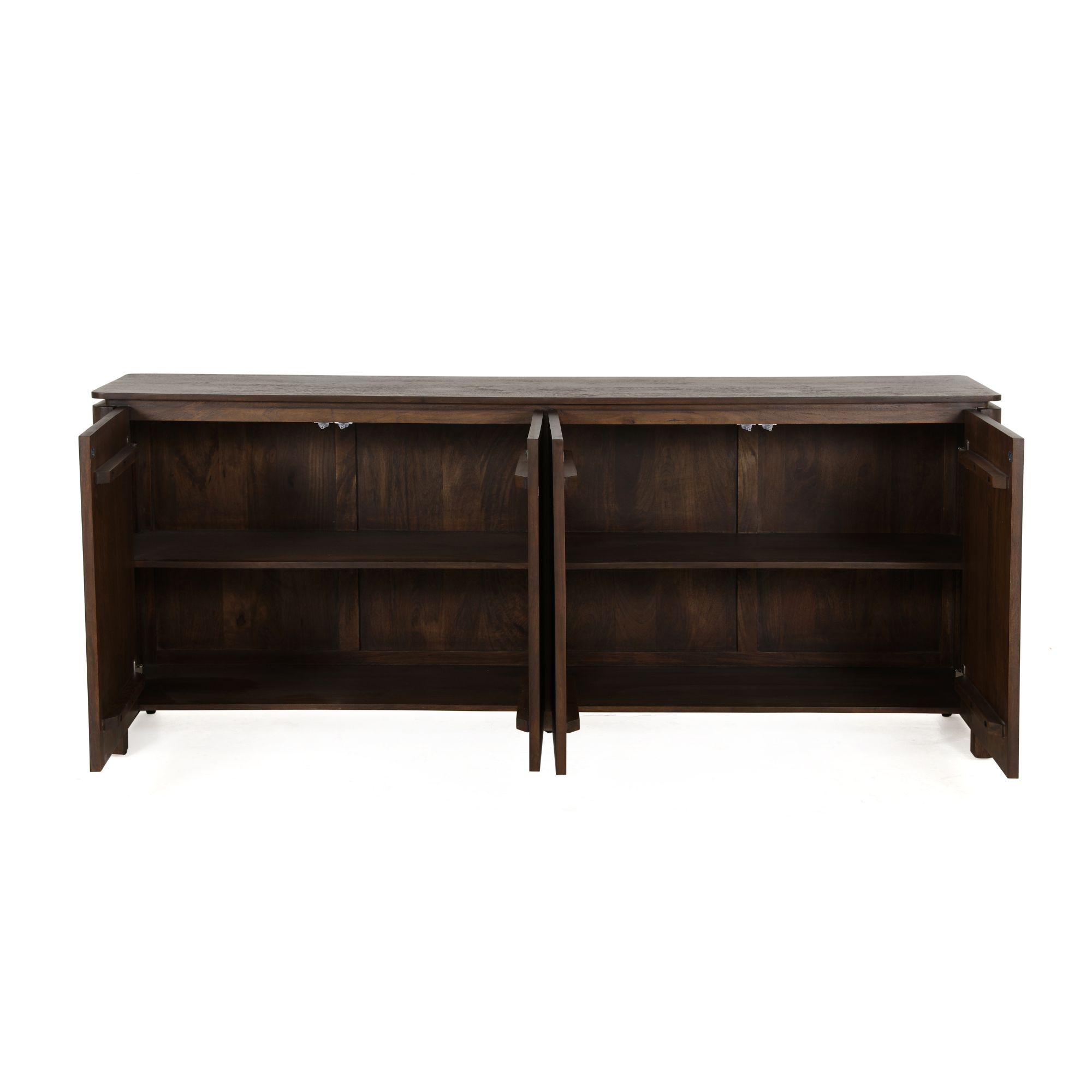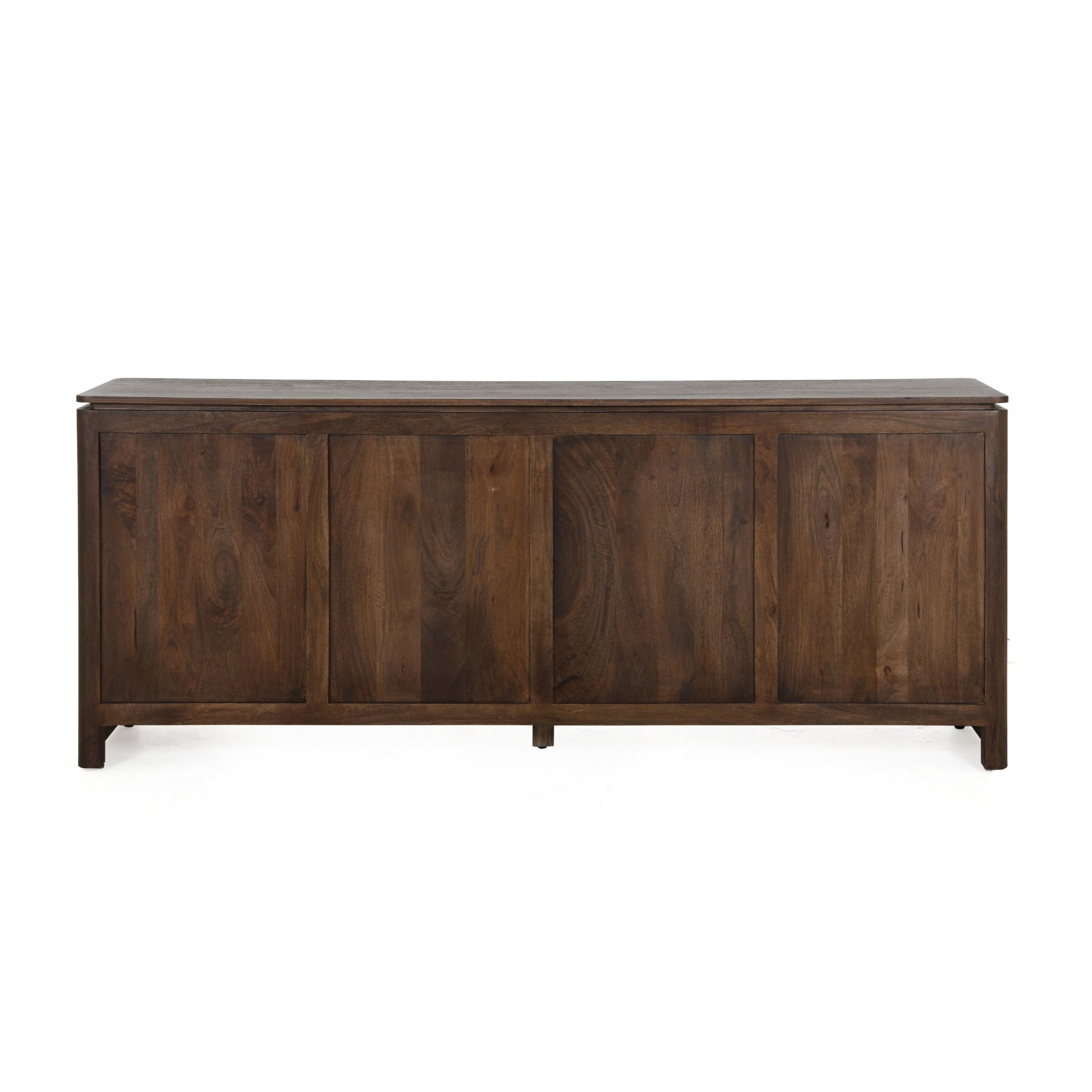 Dressoir Dallas is gemaakt van mangohout in de kleur bruin. Dit model is voorzien van meerdere deuren met daarachter ruime opbergvakken. Het meubel combineert praktische opbergruimte met een tijdloze uitstraling.