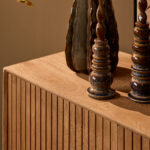Dressoir Madison Natural is gemaakt van hoogwaardig mangohout. Dit meubelstuk biedt, dankzij vier deuren, voldoende opbergruimte. De deuren zijn voorzien van een stijlvol verticaal lattenpatroon, dit zorgt voor een moderne uitstraling. Daarnaast zijn de greeploze deuren voorzien van een handig push-to-open systeem, wat dit meubelstuk een strakke afwerking geeft.