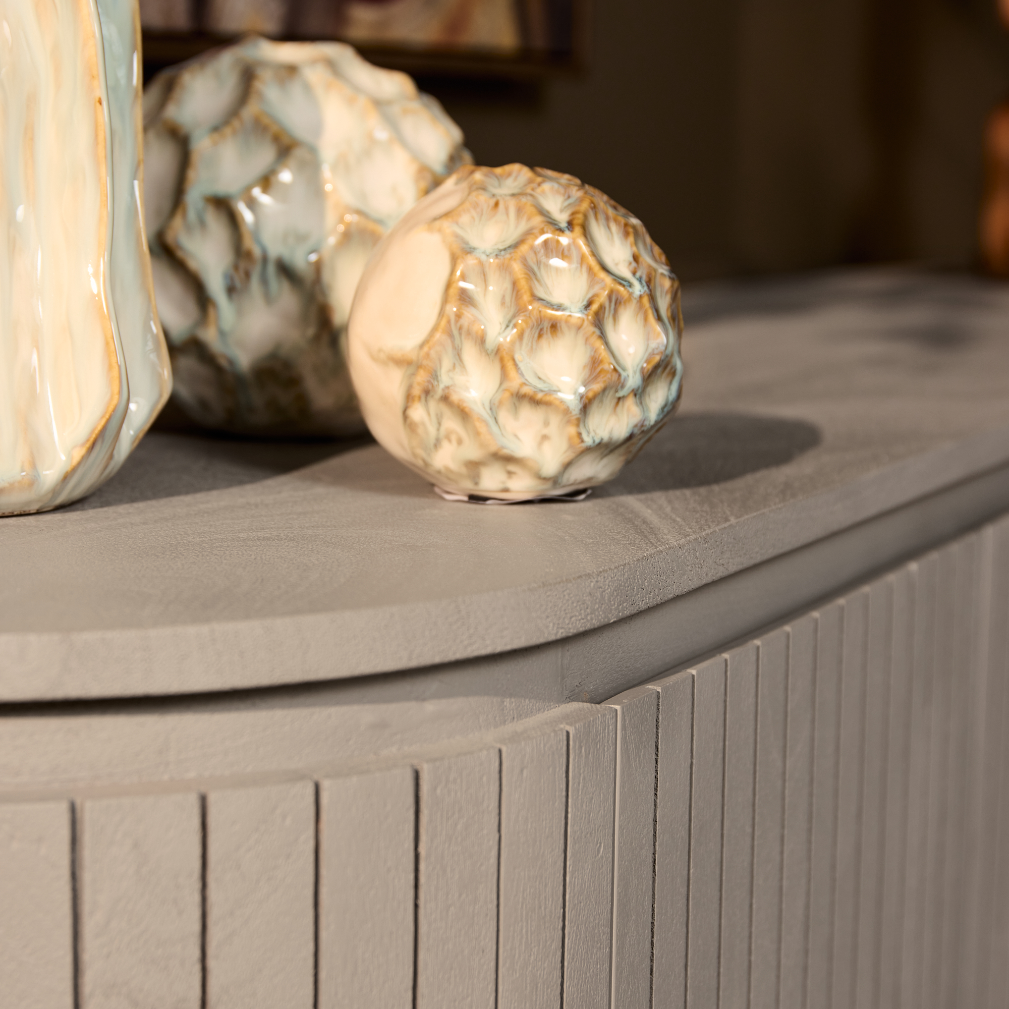 Dressoir Solana is een stijlvol en tijdloos item, gemaakt van mangohout in een taupe finish. Het verticale lattenpatroon geeft een moderne uitstraling. Solana is voorzien van drie deurtjes en biedt daarmee voldoende opbergruimte voor persoonlijke items. Het dressoir is perfect te combineren met andere items uit de Solana serie.