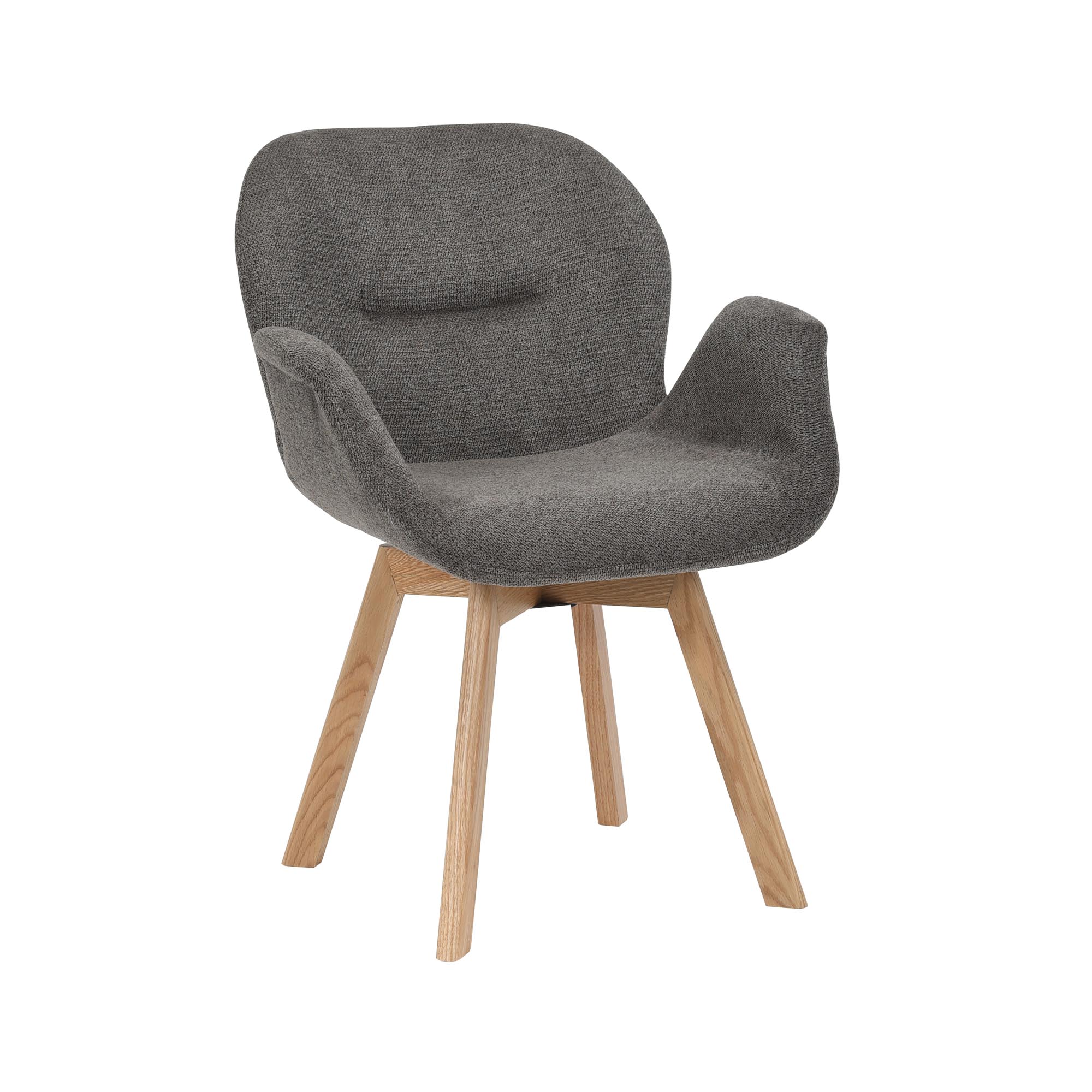Draaibare eetkamerstoel Jesse biedt stijl en comfort. Dankzij de speels gevormde armleuningen heeft de stoel een eigentijdse uitstraling. Jesse is bekleed in een Antraciet kleurige stof. Dat maakt de stoel, in combinatie met de houten poten, erg stijlvol. De eetkamerstoel is 180 graden draaibaar.