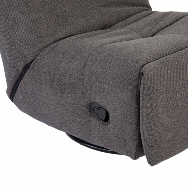 Fauteuil Lazy combineert comfort met gebruiksgemak. Met de zwarte hendel kantel je eenvoudig de rugleuning naar achteren en komt het voetgedeelte omhoog. De stoel is draaibaar en heeft een lichte schommelstand voor extra ontspanning. De subtiele kruisstiksels op de rugleuning, zitting en voetsteun geven het ontwerp een moderne uitstraling. Verkrijgbaar in Light Grey, Dark Grey, Off White, Taupe en Pink.