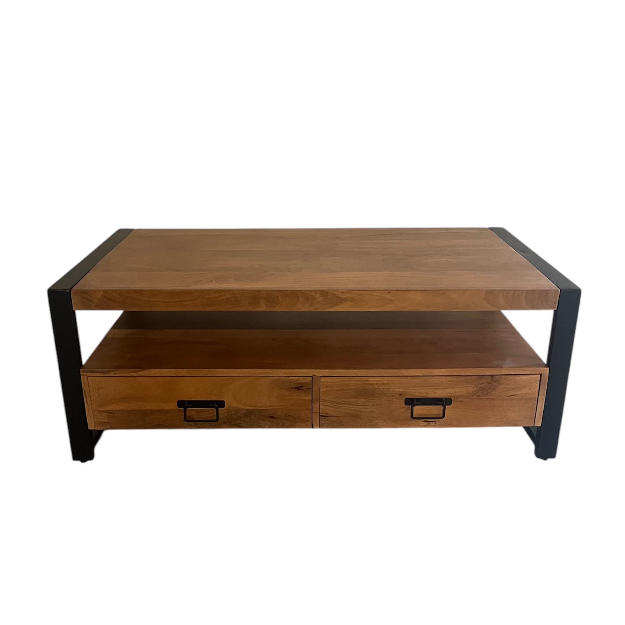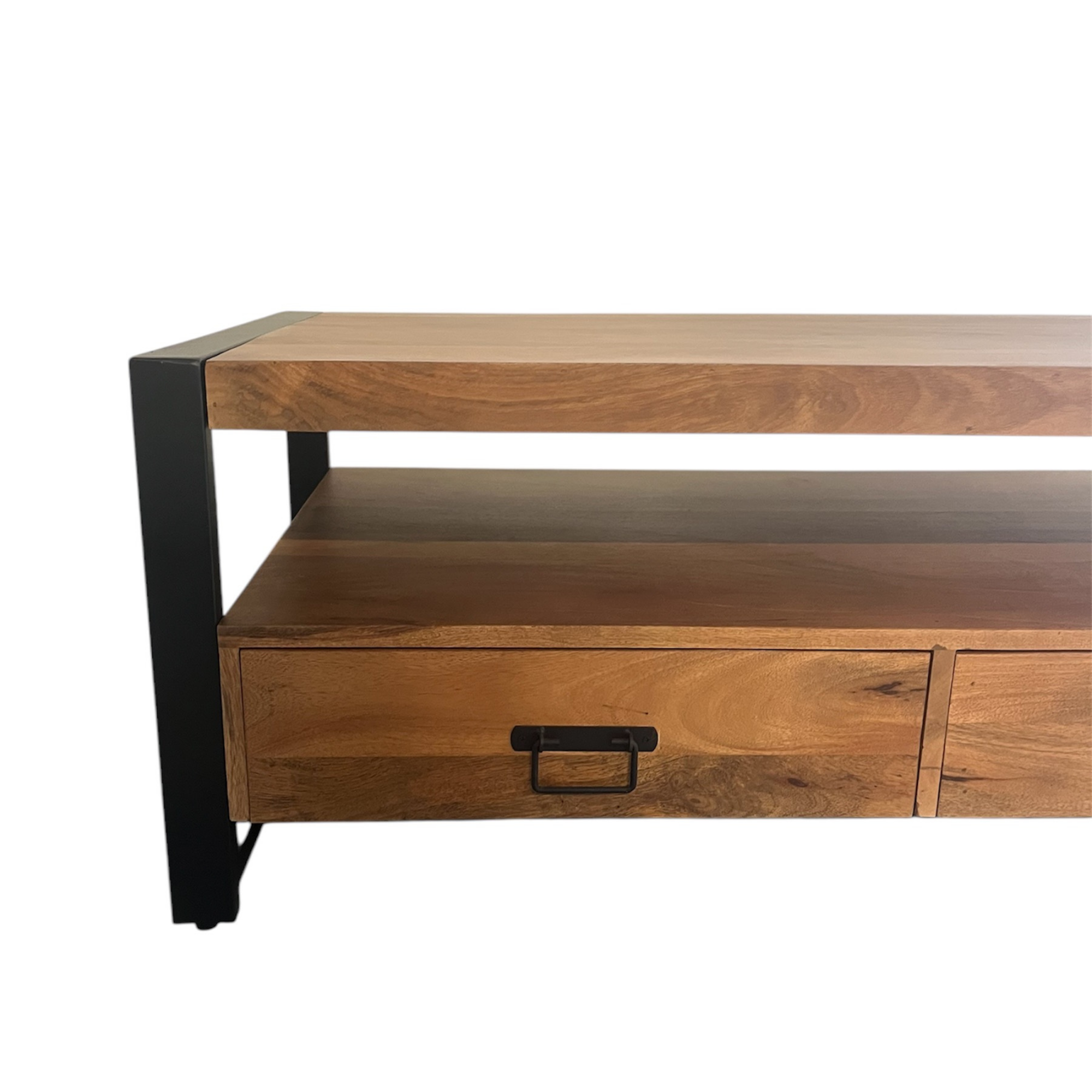 Salontafel Boaz is gemaakt van mangohout en metaal. Het mangohout is behandeld met een blanke lak. De metalen poten zijn afgewerkt met een zwarte lak.