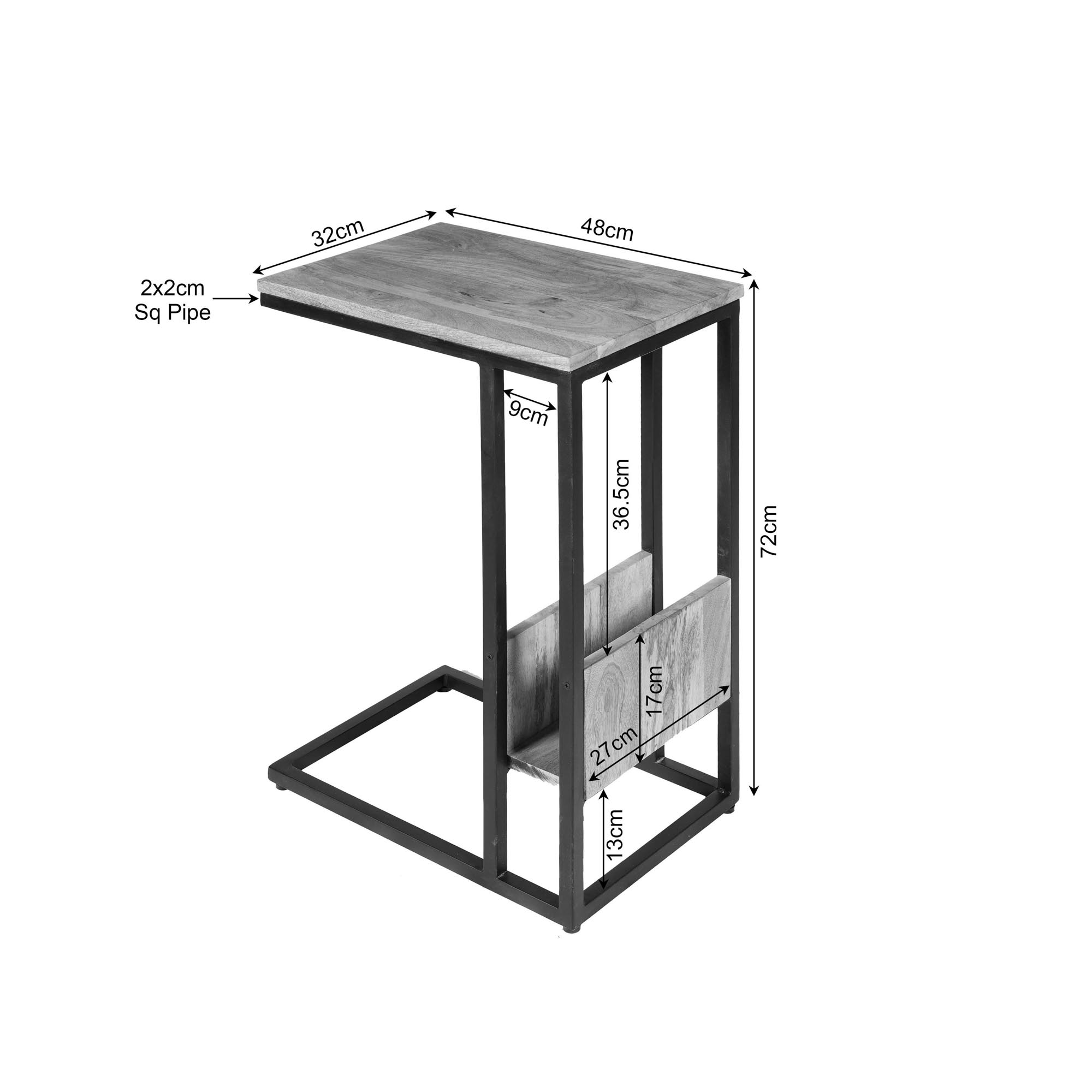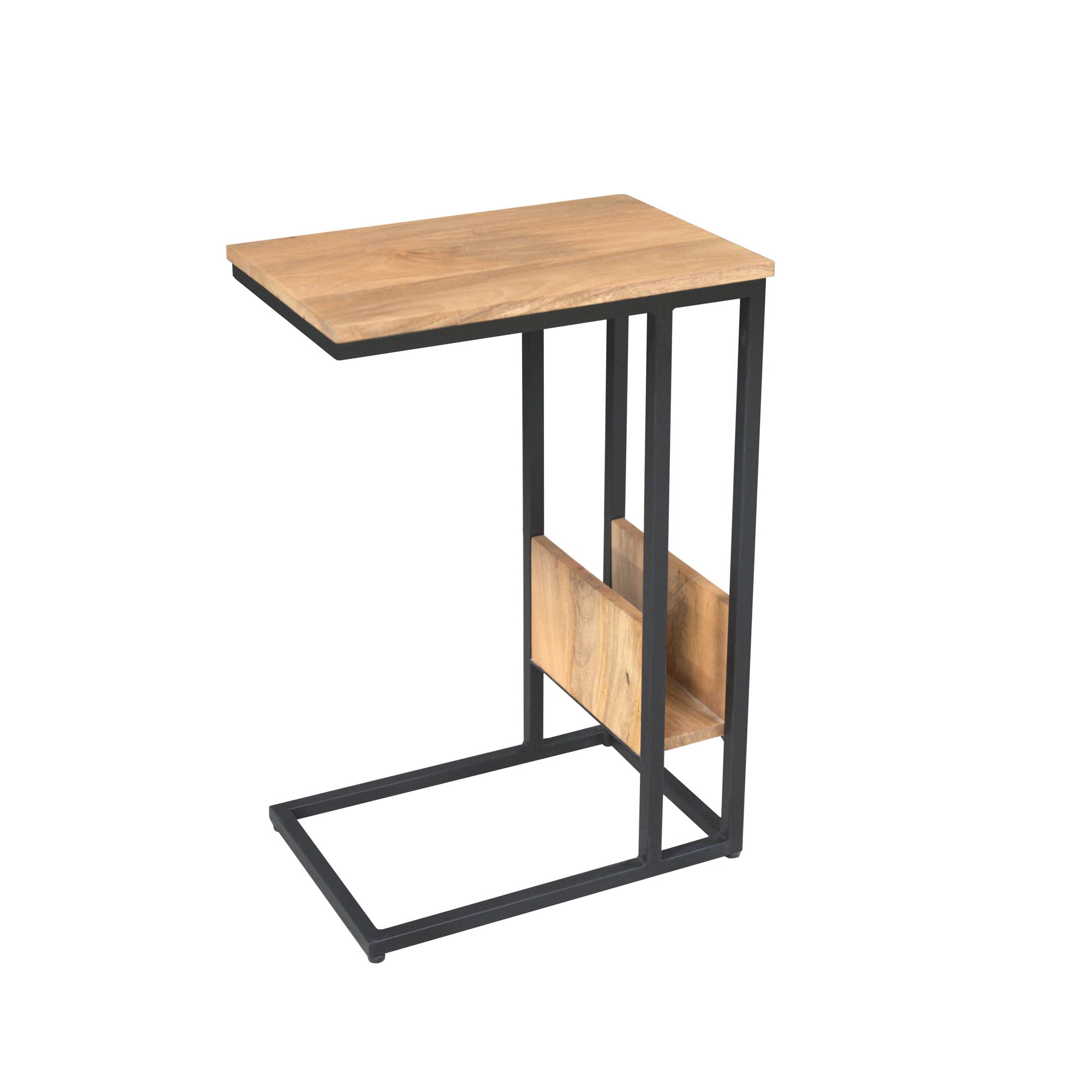 Deze slider is uitgevoerd in mangohout met een lichte finish. Het frame is gemaakt van metaal en is afgewerkt met een zwarte lak. De slider is een ideale toevoeging voor bij de bank.