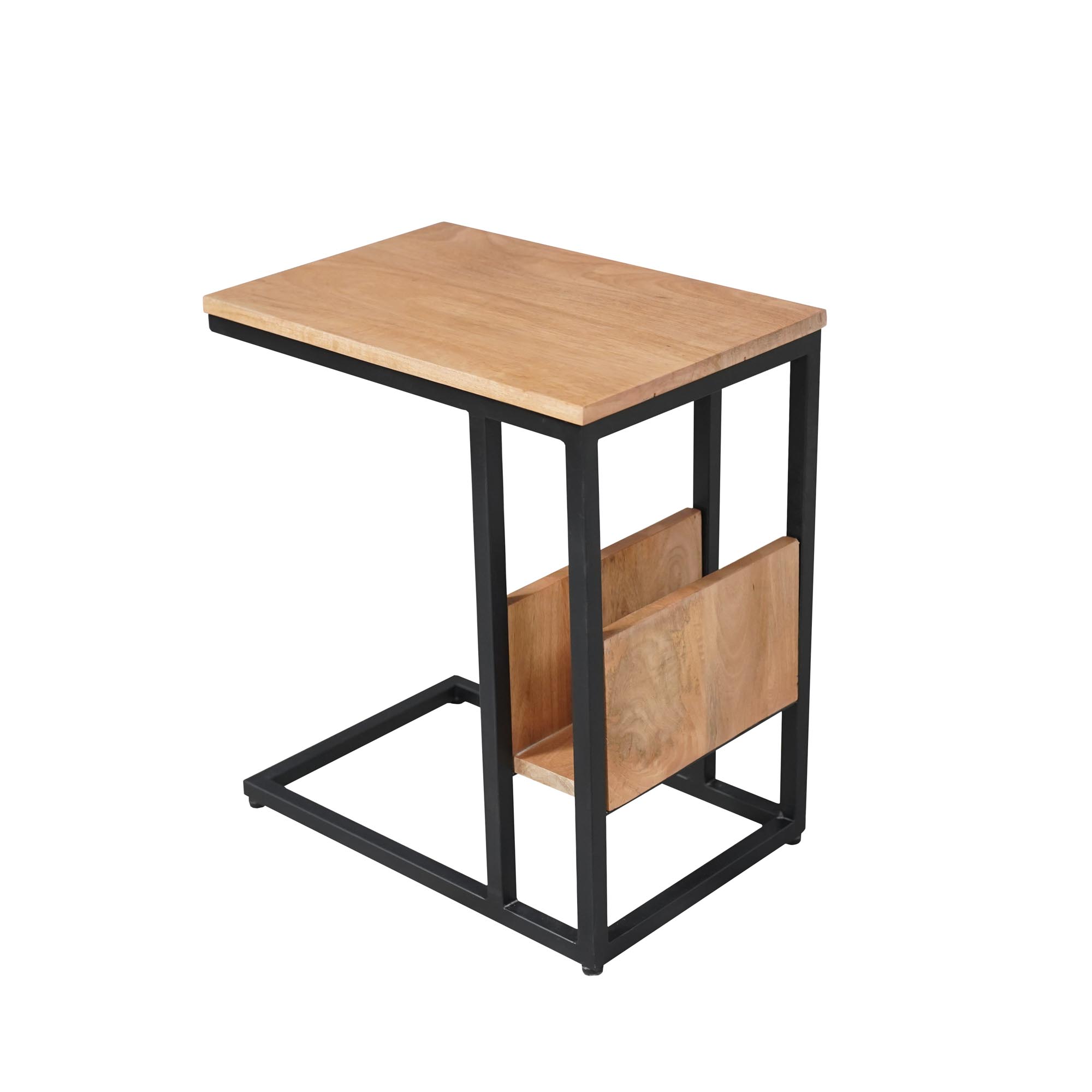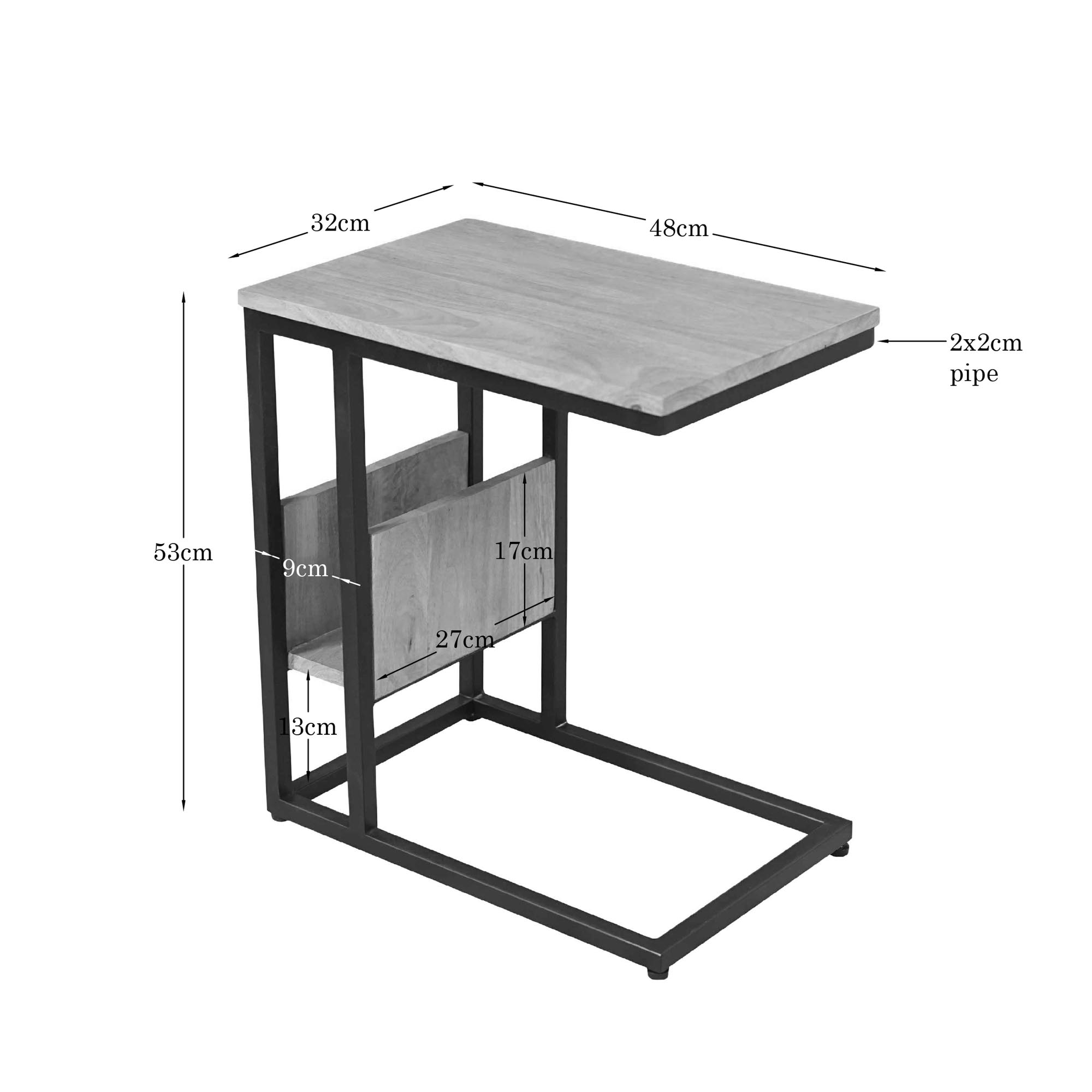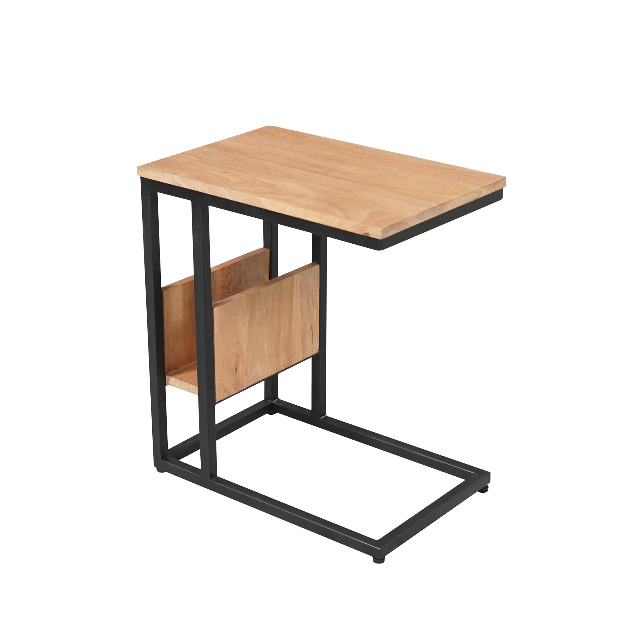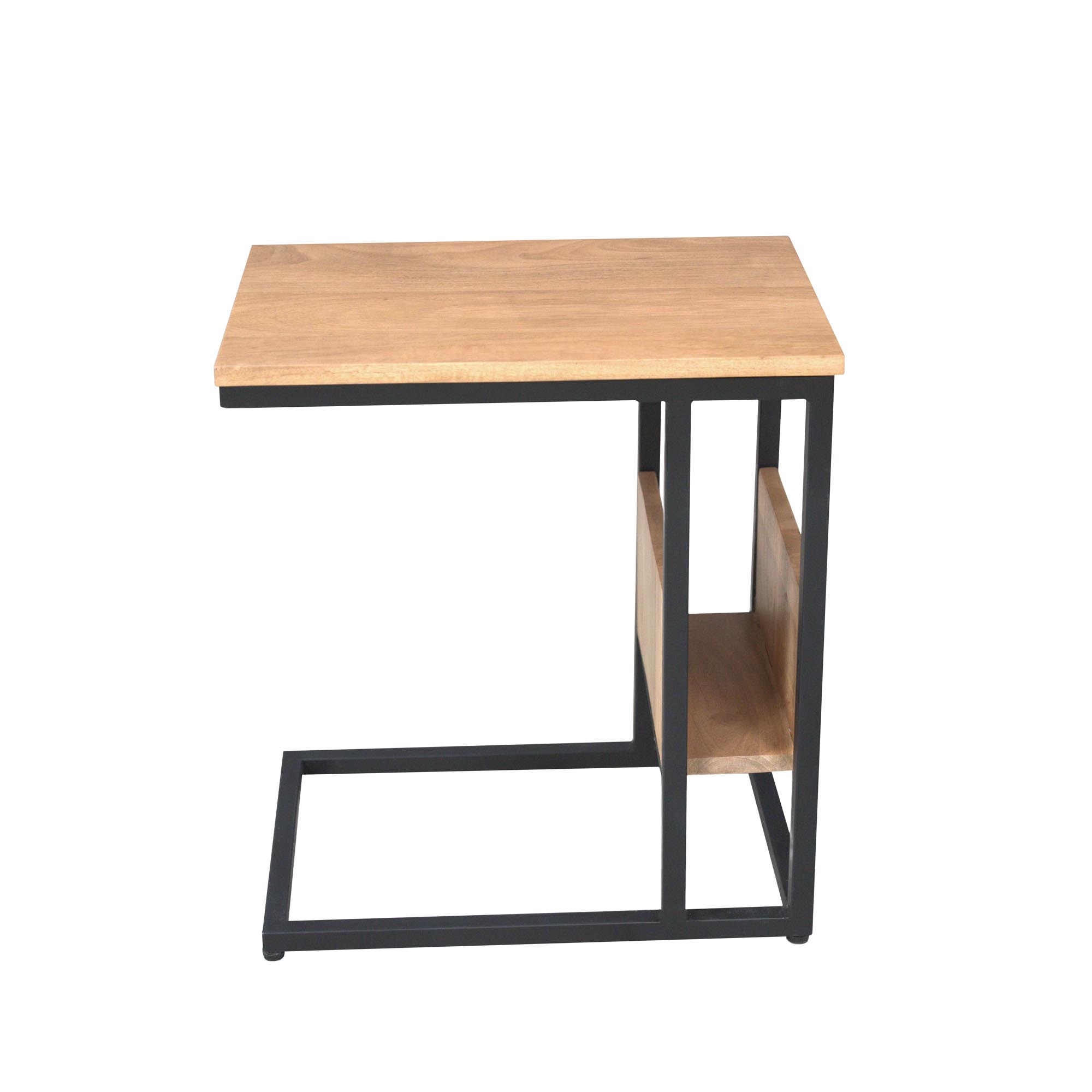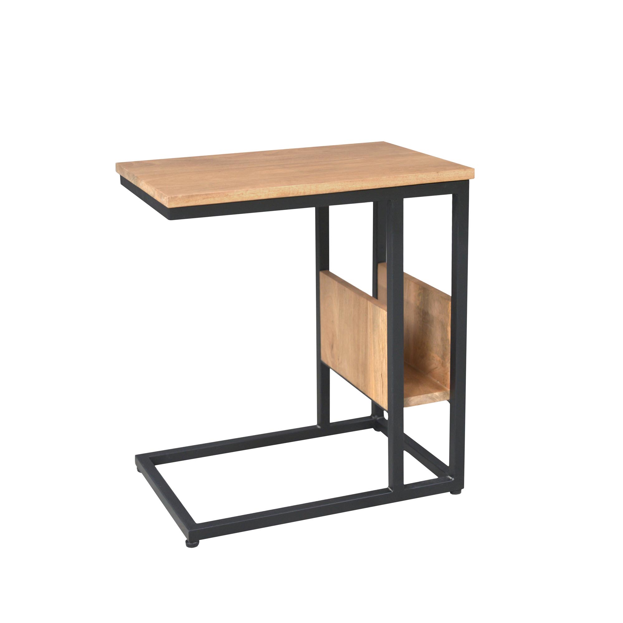 Deze slider is uitgevoerd in mangohout met een lichte finish. Het frame is gemaakt van metaal en is afgewerkt met een zwarte lak. De slider is een ideale toevoeging voor bij de bank.
