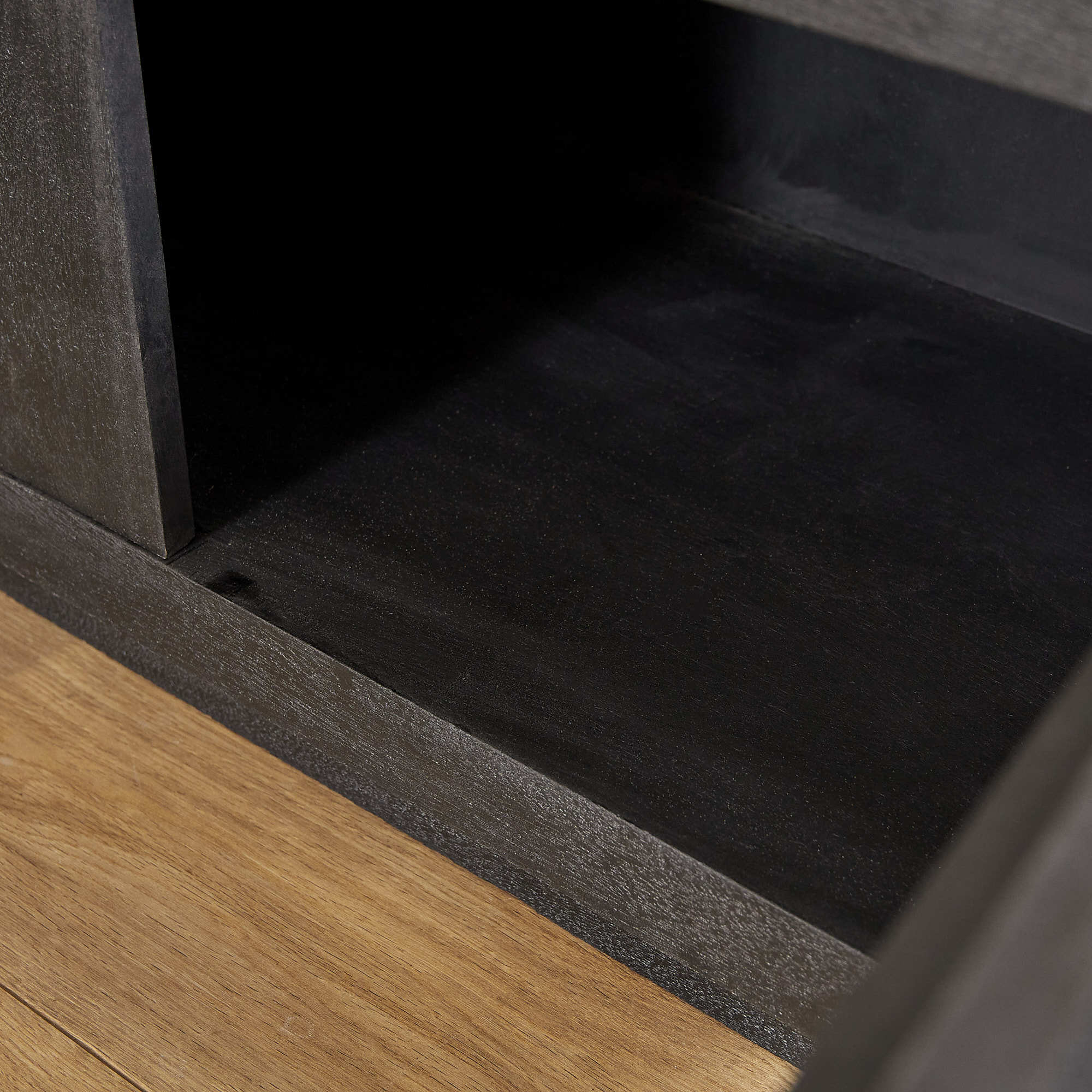 TV-meubel Brussel Black is gemaakt mangohout en afgewerkt met een verfijnde black finish. Dit meubelstuk straalt stijl uit dankzij het strakke en eigentijdse design. Met vier greeploze deuren, voorzien van een handig push-to-open systeem, biedt dit meubel niet alleen een moderne uitstraling maar ook functionele opbergruimte voor al je media-apparatuur.