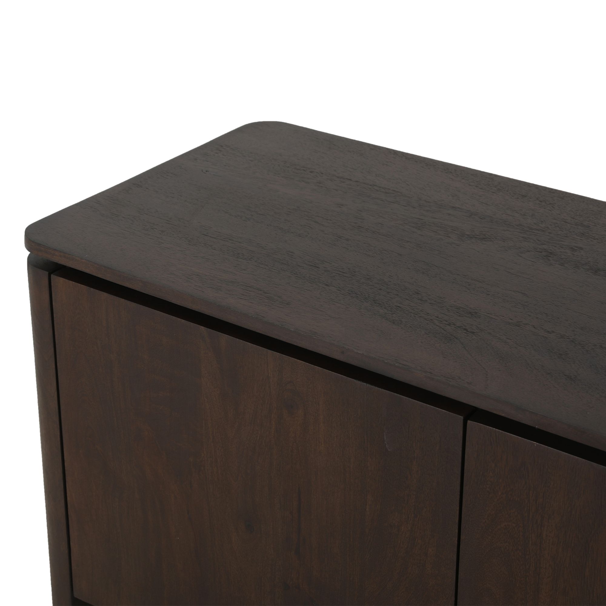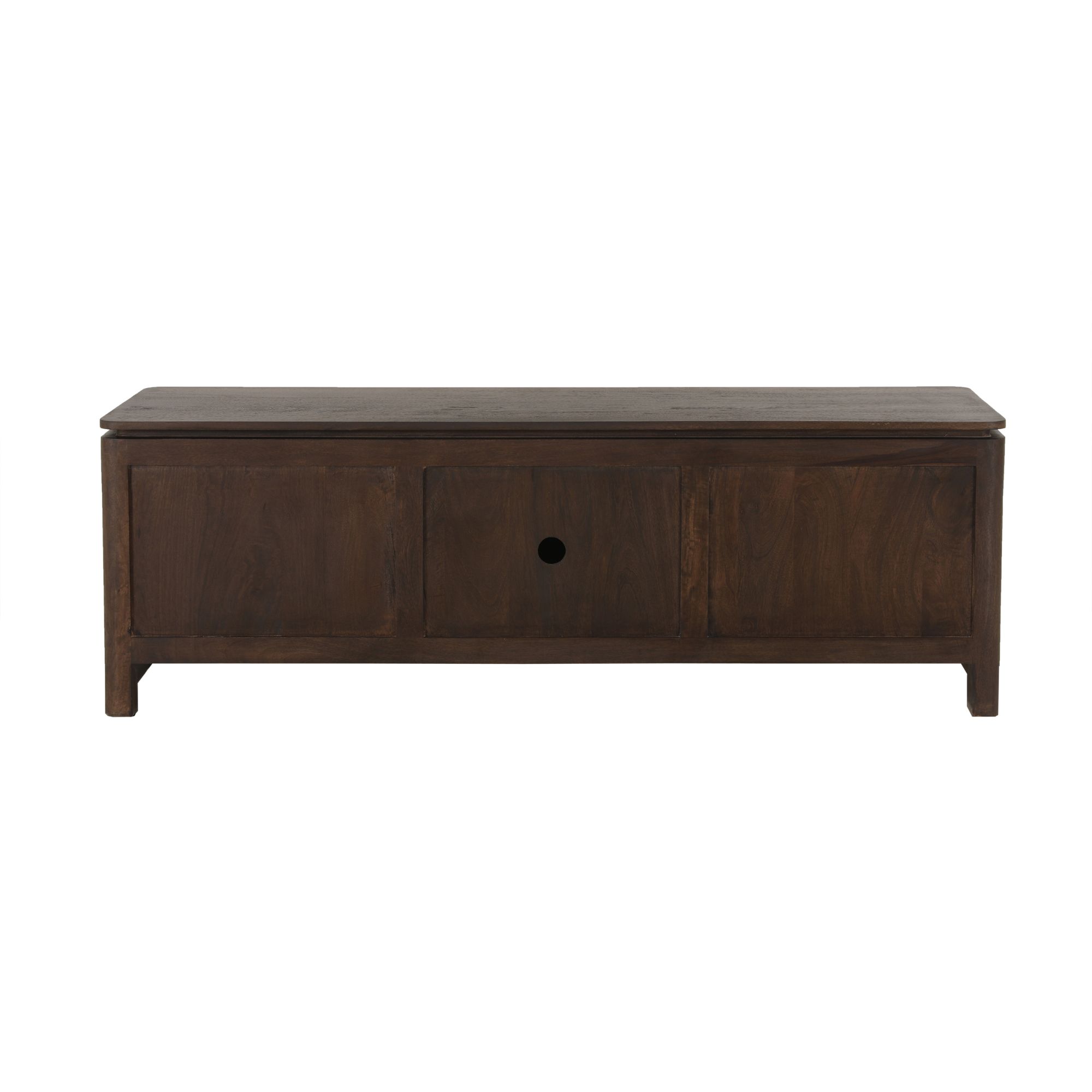 Tv meubel Dallas is gemaakt van mangohout in de kleur bruin. Dit model is voorzien van meerdere opbergvakken en biedt voldoende ruimte voor apparatuur en accessoires. Het strakke design zorgt voor een rustige uitstraling.