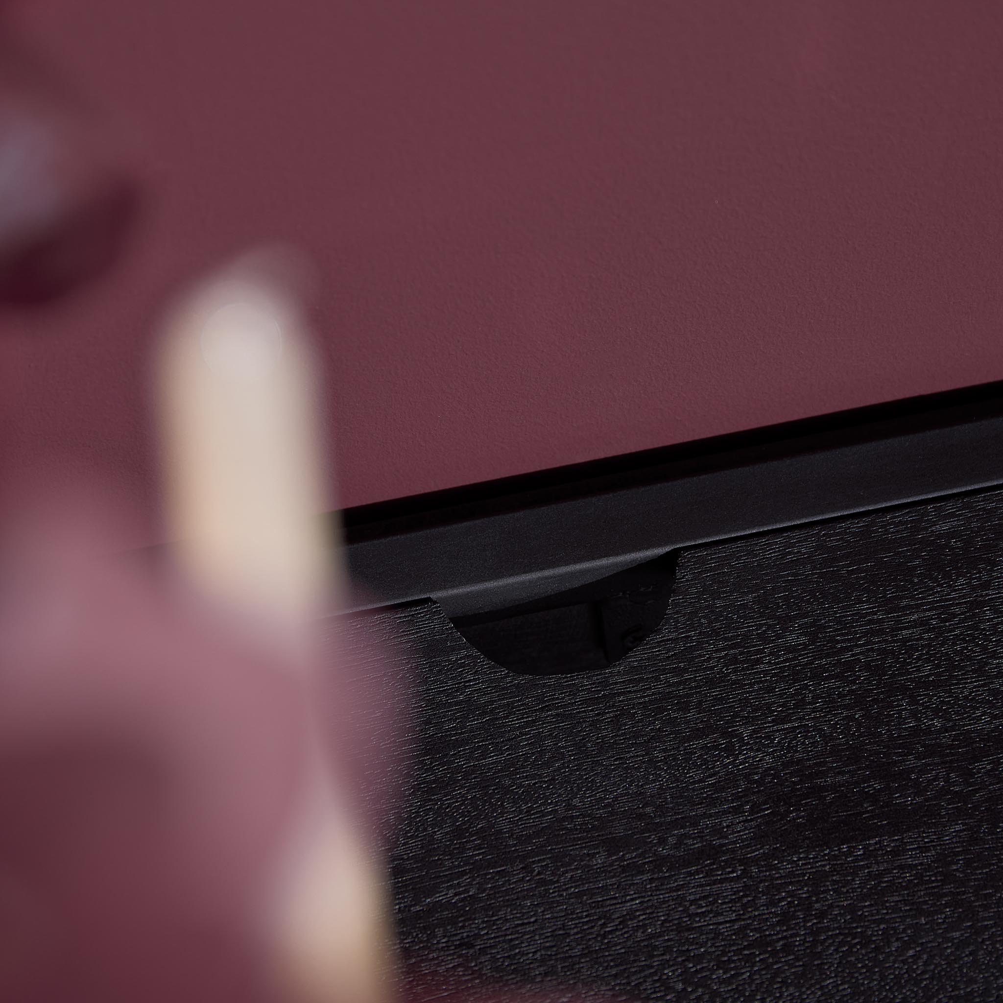 Dit stijlvolle zwevende TV-meubel is gemaakt van gezandstraald mangohout en afgewerkt met een moderne zwarte lak. De unieke visgraatpatroon aan de voorkant geeft een verfijnde touch, terwijl het open vak een praktische oplossing biedt om je spullen overzichtelijk en stijlvol op te bergen en tentoon te stellen. Een perfecte combinatie van elegantie en functionaliteit voor een strakke en moderne woonkamer!