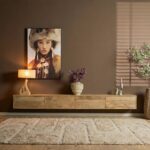 Zwevend tv meubel Vision is gemaakt van massief mangohout afgewerkt met een lichte finish. Het model kenmerkt zich door zijn strakke uitstraling en is greeploze deurtjes. De deurtjes zijn voorzien van een push to open systeem.