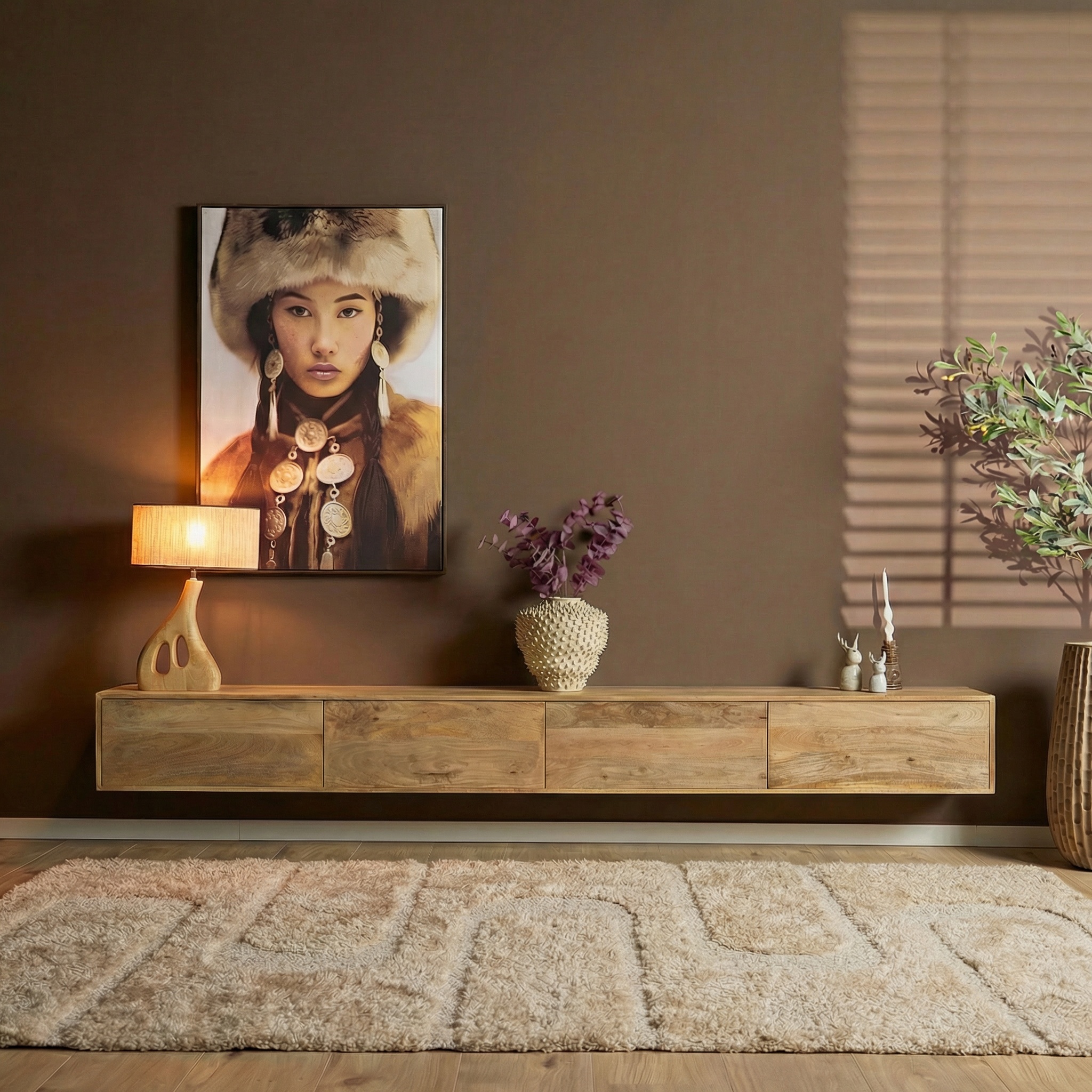 Let op: dit meubel wordt aan de muur bevestigd en is uitsluitend geschikt voor tv’s met een muurbevestiging.